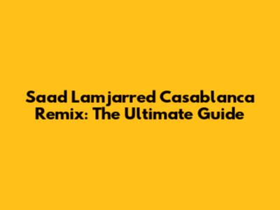 Saad Lamjarred Casablanca Remix: The Ultimate Guide