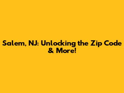 Salem, NJ: Unlocking The Zip Code & More!