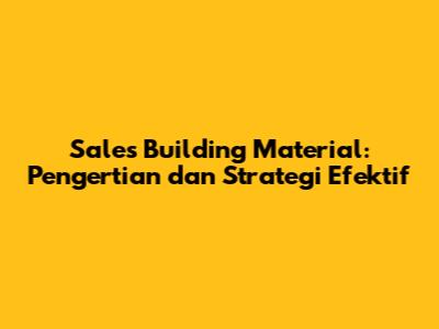 Sales Building Material: Pengertian Dan Strategi Efektif