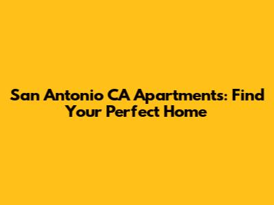 San Antonio CA Apartments: Find Your Perfect Home