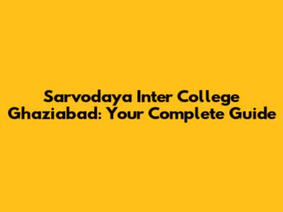 Sarvodaya Inter College: A Guide For Parents