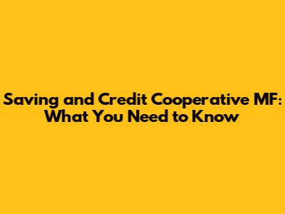 Saving And Credit Cooperative MF: What You Need To Know