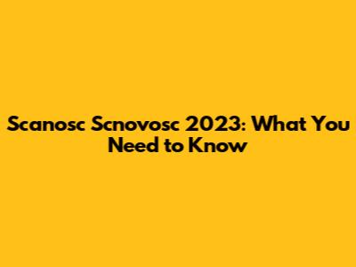 Scanosc Scnovosc 2023: What You Need To Know