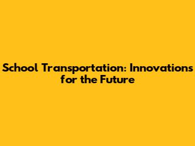 School Transportation: Innovations For The Future