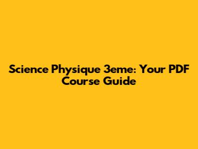 Science Physique 3eme: Your PDF Course Guide