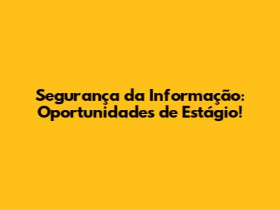 Segurança Da Informação: Oportunidades De Estágio!