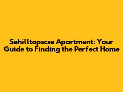 Sehilltopscse Apartment: Your Guide To Finding The Perfect Home