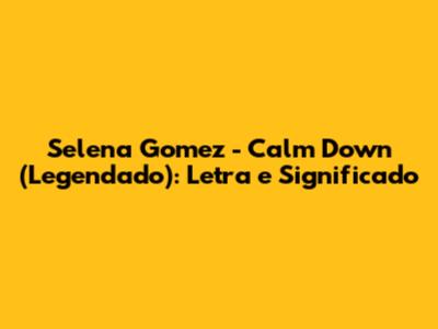 Selena Gomez - Calm Down (Legendado): Letra E Significado