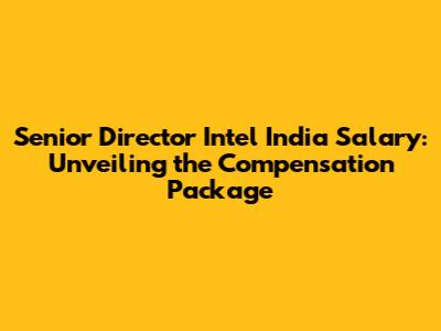 Senior Director Intel India Salary: What You Need To Know