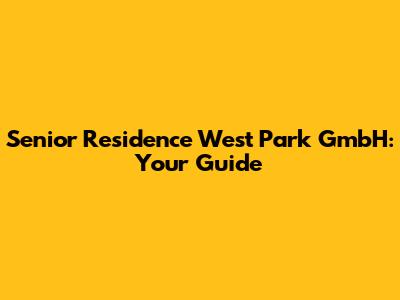 Senior Residence West Park GmbH: Your Guide