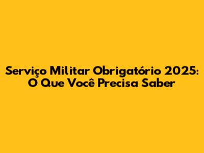 Serviço Militar Obrigatório 2025: O Que Você Precisa Saber