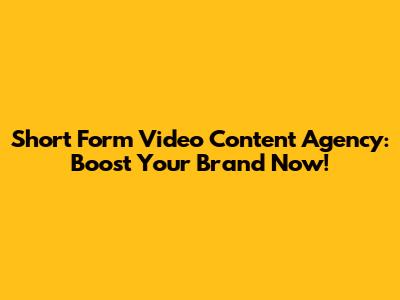 Short Form Video Agency: Boost Your Brand Now!