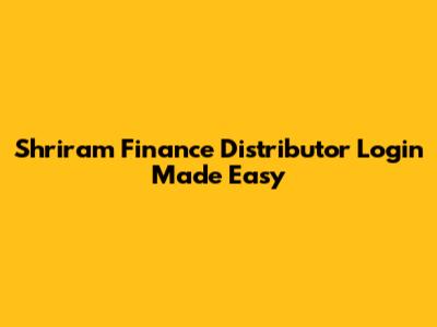 Shriram Finance Distributor Login Made Easy