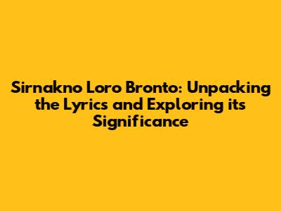 Sirnakno Loro Bronto: A Deep Dive Into The Song's Lyrics And Meaning
