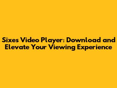 Sixes Video Player: Download & Enjoy Your Favorite Content