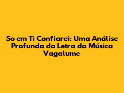 A melodia de "So em Ti Confiarei" é suave e envolvente, com acordes que nos acalmam e nos transportam para um estado de paz interior. A música é composta por instrumentos que criam uma atmosfera de esperança e renovação. A letra da música Vagalume é poética e cheia de simbolismos, que nos transportam para um mundo de fé e confiança. A banda Vagalume, com sua maestia, conseguiu criar uma música que nos envolve, nos acalma e nos inspira a seguir em frente.