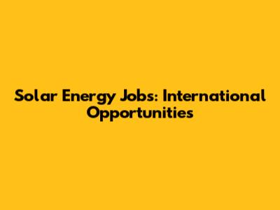 Solar Energy Jobs: International Opportunities