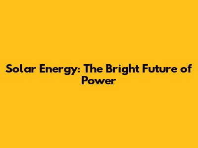 Solar Energy: The Bright Future Of Power
