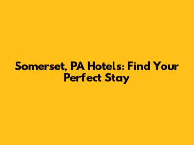 Are you planning a trip to Somerset, Pennsylvania, and searching for the perfect hotel? You've come to the right place! Finding the right accommodation can significantly enhance your travel experience. Whether you're looking for luxury, budget-friendly options, or something in between, Somerset offers a variety of hotels to suit every traveler's needs. In this article, we'll guide you through the best hotels in and around Somerset, ensuring you have a comfortable and memorable stay.