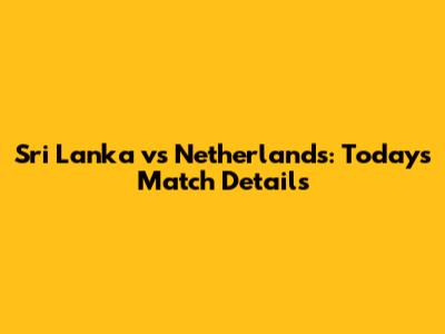 Sri Lanka Vs Netherlands: Today's Match Details
