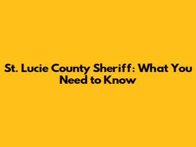 St. Lucie County Sheriff: What You Need To Know