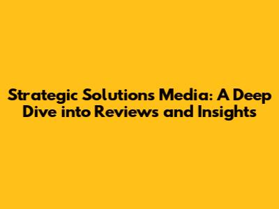 Strategic Solutions Media: In-Depth Reviews & Insights