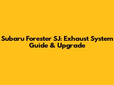 Subaru Forester SJ: Exhaust System Guide & Upgrade