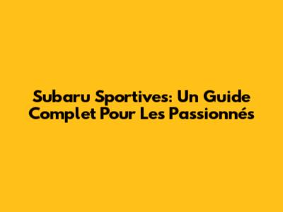 Subaru Sportives: Un Guide Complet Pour Les Passionnés