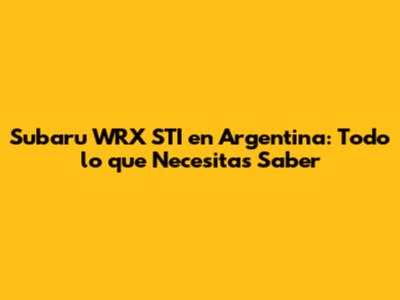 Dónde Comprar un Subaru WRX STI en Argentina