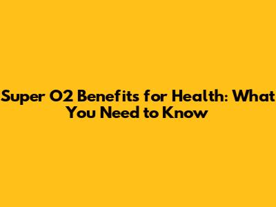 Super O2 Benefits For Health: What You Need To Know