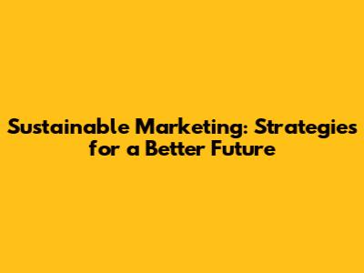 Sustainable Marketing: Strategies For A Better Future