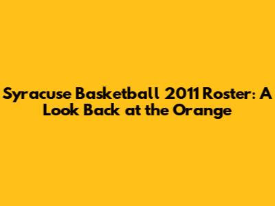 Syracuse Basketball 2011 Roster: A Look Back At The Orange