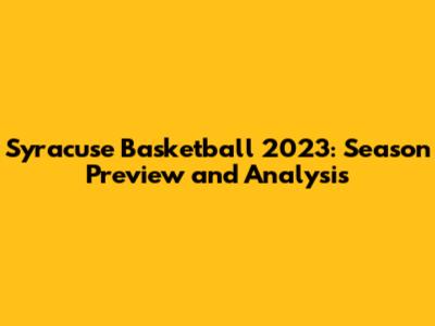 Syracuse Basketball 2023: Season Preview And Analysis