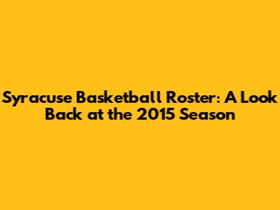 Syracuse Basketball Roster: A Look Back At The 2015 Season