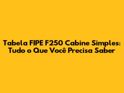 Tabela FIPE F250 Cabine Simples: Guia Completo E Atualizado