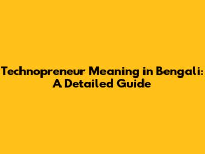 Technopreneur Meaning In Bengali: A Detailed Guide