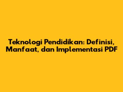 Teknologi Pendidikan: Definisi, Manfaat, Dan Implementasi PDF