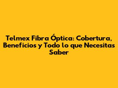 Telmex Fibra Óptica: Cobertura, Beneficios Y Todo Lo Que Necesitas Saber