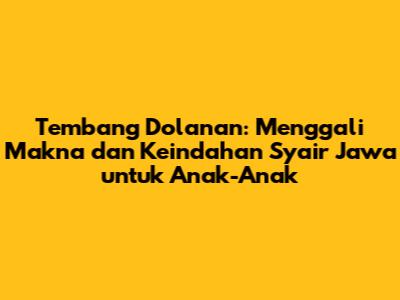 Tembang dolanan adalah warisan budaya Jawa yang sangat berharga. Bukan cuma sekadar lagu, tembang dolanan juga mengandung nilai-nilai pendidikan, moral, dan sosial yang sangat penting bagi anak-anak. Mari kita lestarikan tembang dolanan dengan cara menyanyikannya, memainkannya, dan mengajarkannya kepada generasi penerus. Dengan begitu, kita turut berkontribusi dalam menjaga kelestarian budaya Jawa. Jadi, tunggu apa lagi, guys? Yuk, mulai nyanyi tembang dolanan sekarang juga!Mari kita jadikan tembang dolanan sebagai bagian dari kehidupan anak-anak kita, agar mereka dapat tumbuh dan berkembang dengan nilai-nilai luhur budaya Jawa.