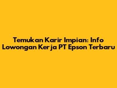 Temukan Karir Impian: Info Lowongan Kerja PT Epson Terbaru
