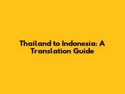Thailand To Indonesia: A Translation Guide