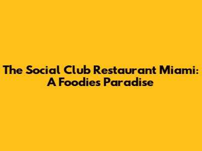 The Social Club Restaurant Miami: A Foodie's Paradise