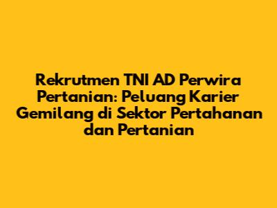 Rekrutmen TNI AD Perwira Pertanian – Halo, guys! Kalian yang punya passion di bidang pertanian dan bercita-cita mengabdi pada negara, artikel ini pas banget buat kalian. Kita akan bahas tuntas tentang rekrutmen TNI AD untuk perwira pertanian. Penasaran kan, gimana caranya jadi bagian dari korps militer sambil tetap berkontribusi di sektor pertanian? Yuk, simak ulasan lengkapnya!