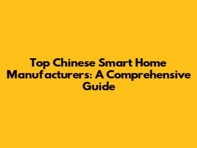 Top Chinese Smart Home Manufacturers: A Comprehensive Guide