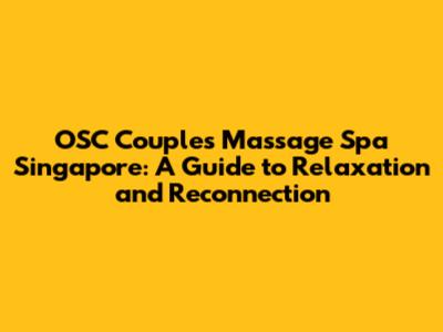 Okay, let's address the "OSC" part of "OSC couples massage spa Singapore." While "OSC" might not be a universally recognized acronym in the spa industry, it could refer to a specific spa or a particular type of massage offered by certain establishments. It's important to do your research and find out exactly what "OSC" means in the context of the spa you're considering. It might stand for the name of the spa itself, a special technique they use, or a unique package they offer. Don't be afraid to ask the spa directly for clarification. Understanding what "OSC" entails will help you make an informed decision and ensure that the massage meets your expectations.