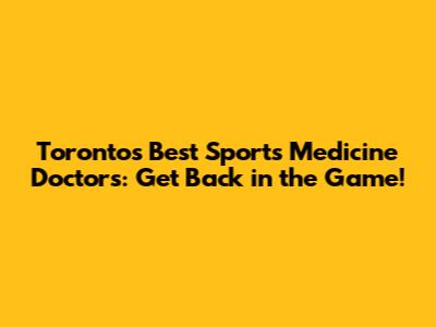 Toronto's Best Sports Medicine Doctors: Get Back In The Game!