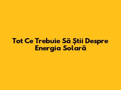 Tot Ce Trebuie Să Știi Despre Energia Solară