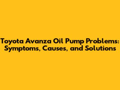 Toyota Avanza Oil Pump Issues: Symptoms, Causes, And Solutions
