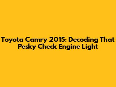 Hey guys, ever had that sinking feeling when the check engine light pops on in your 2015 Toyota Camry? Yeah, it's not a fun experience. But don't sweat it too much! While it can be a sign of a major problem, often, it's something relatively minor. This article is your go-to guide for understanding why your 2015 Camry's engine light is on, what you can do about it, and how to get it sorted out. We'll break down the common causes, how to diagnose the issue, and when it's time to call in the pros. So, buckle up, and let's dive into the world of Toyota Camry engine diagnostics!