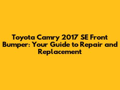 Hey car enthusiasts! So, you're here because you're dealing with a Toyota Camry 2017 SE front bumper issue, huh? Don't sweat it, you're in the right place! Whether it's a minor scratch, a significant dent, or something worse, getting your bumper sorted is crucial for both the look and safety of your ride. This guide is all about helping you understand the ins and outs of your Toyota Camry 2017 SE front bumper repairs and replacements. We'll dive into everything from assessing the damage to choosing the right replacement parts and even some DIY tips (if you're feeling brave!). Let's get started and get that Camry looking sharp again!